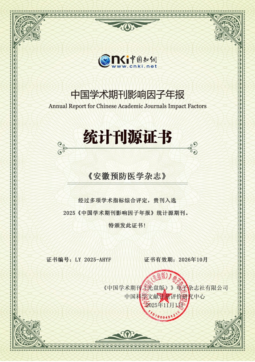 本刊专注于报道我国公共卫生和预防医学领域的防控进展与研究成果,现设有论著、疾病控制、调查报告、公共卫生管理、卫生监督与监测、检验技术与方法、妇幼保健、健康教育与健康促进、综述等栏目。本刊现为《中国学术期刊影响因子年报》统计源期刊,被《中国核心期刊(遴选)数据库》《中国期刊全文数据库》《中国生物医学文献数据库》等国内重要数据库收录,先后获得中华预防医学会期刊质量进步奖、安徽省优秀期刊、华东地区优秀期刊等荣誉。